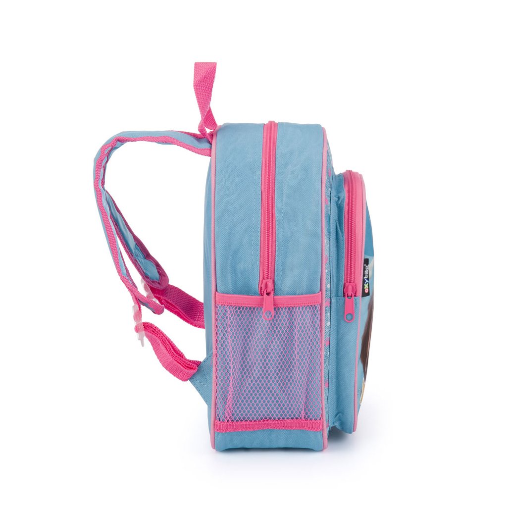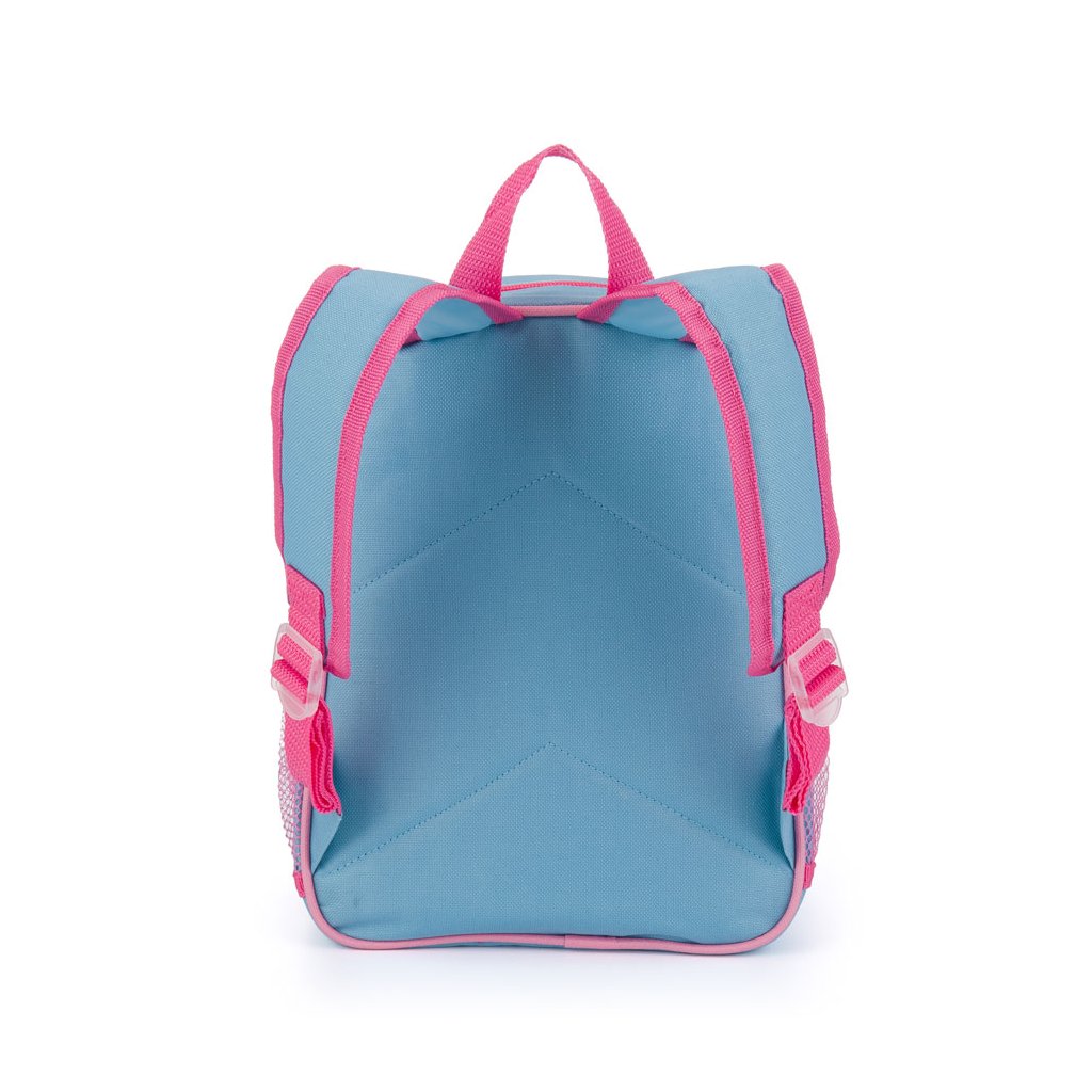 Menší batůžek vhodný pro děti předškolního věku na volnočasové aktivity. Má jednu velkou kapsu, menší kapsu na svačinu a postranní kapsičky na lahev na pití.