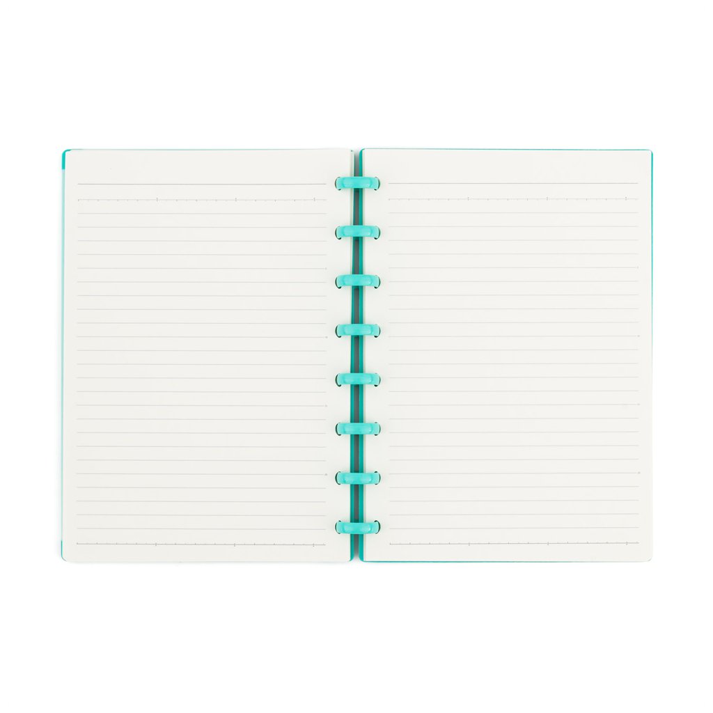 Blok má odolnou obálku z polypropylenu a praktickou kroužkovou vazbu, která usnadňuje otáčení stránek.
