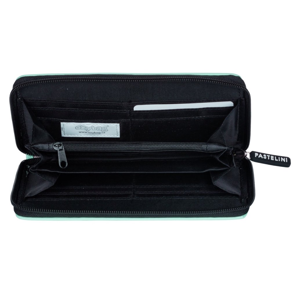 Dámská peněženka MONY L PASTELINI zelená – prostorná a elegantní, s 8 kapsami na karty, 2 většími přihrádkami, 3 oddělenými přihrádkami na hotovost a kapsou na zip pro mince.
