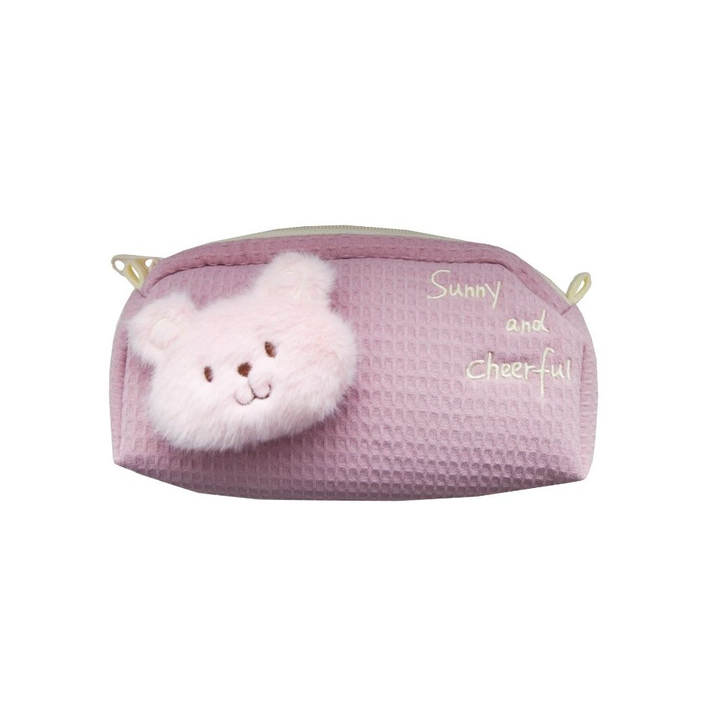 Roztomilé pouzdro na pastelky a tužky, které si děti okamžitě zamilují. Hlavní ozdobou je měkká plyšová hlavička medvídka, která působí jako malý mazlíček.