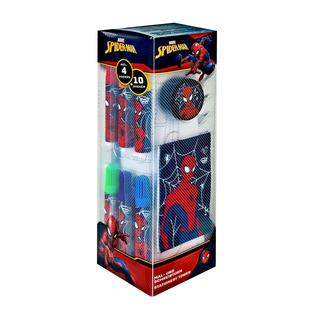 Kreativní sada s motivem Spider-Man obsahuje 10 mini barevných tužek, 6 fixů, tužku, pravítko, gumu, ořezávátko, poznámkový blok, 4 plakáty a 10 nálepek.