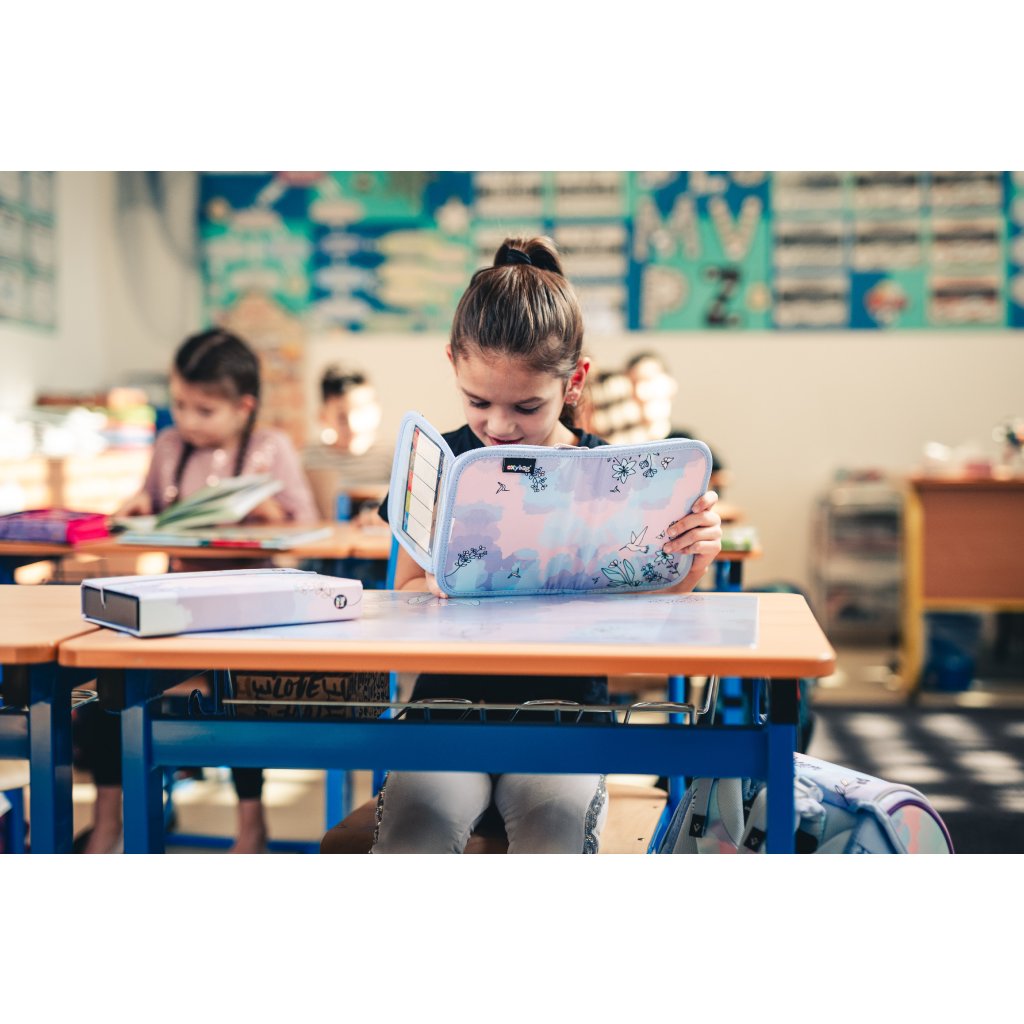 Jednopatrový školní penál Kolibřík fialový – praktický a stylový pomocník pro každého školáka.
