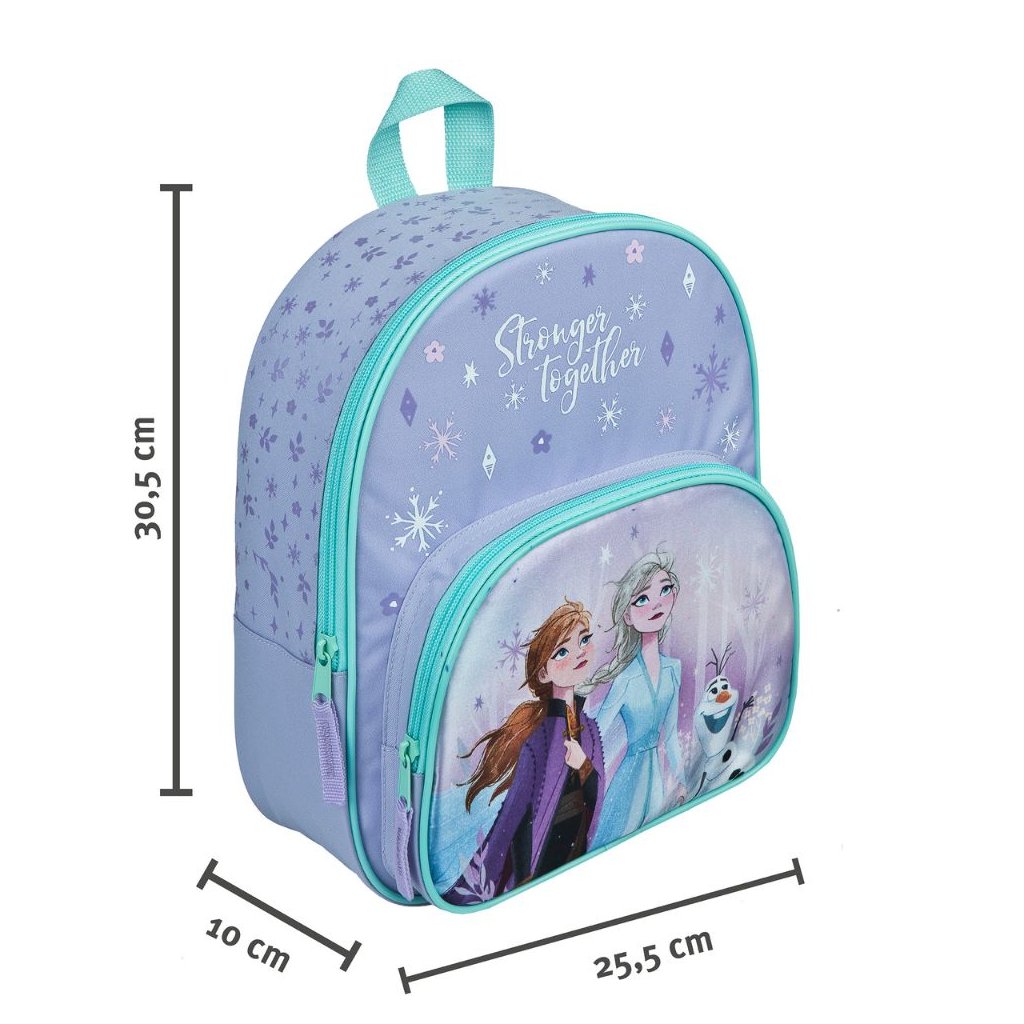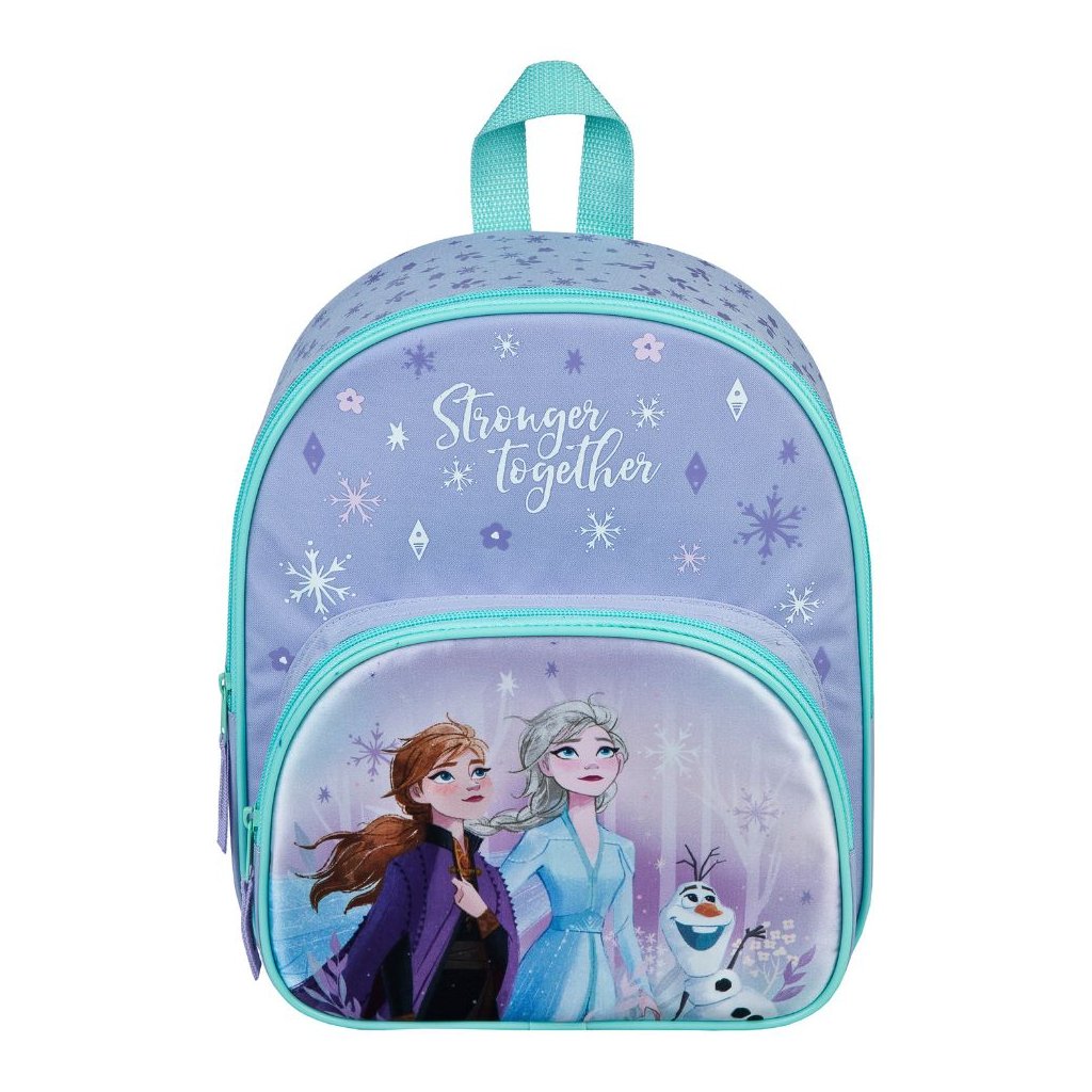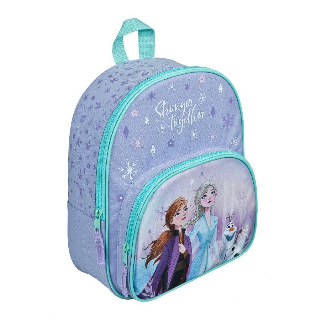 Na přední straně najdeš Elsu, Annu a sněhuláka Olafa, kteří budou tvými věrnými společníky na cestách do školky, na výlety nebo jen tak do města.