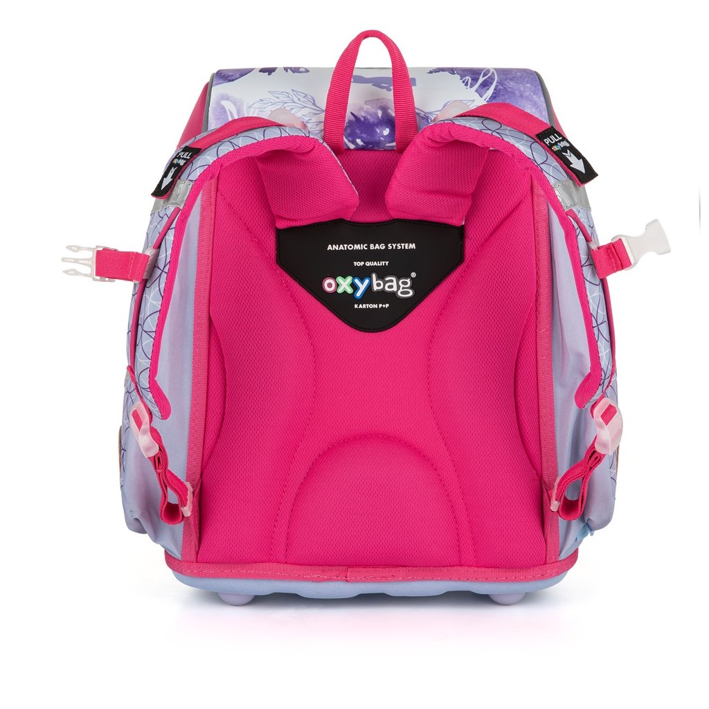 Přátelskou školní aktovku si zamilujete na první pohled: má anatomicky tvarovaná a polstrovaná záda, nastavitelné popruhy (ramenní a hrudní) a díky vnitřní výztuze perfektně drží tvar.