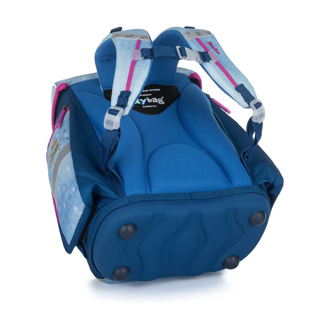 Pevné dno s nožkami zabraňuje jak ušpinění zvenku, tak protečení čehokoliv, co se vylije uvnitř. Na předním díle najdete praktickou kapsu na svačinu a po stranách dvě větší kapsy. Jistě oceníte také přezku pro bezpečné zavírání a reflexní prvky. Vnitřní uspořádání batohu odpovídá přesně potřebám prvňáků a druháků: do prostorné hlavní komory snadno naskládáte všechny potřebné školní pomůcky, vejde se jich sem až 8 kg.