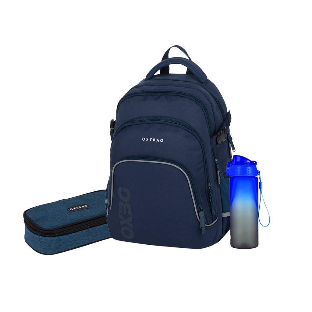 Tento 3dílný školní set je ideální volbou pro žáky od 3. třídy. Set zahrnuje batoh OXY Scooler- lehký (780 g) a praktický tříkomorový školní batoh s anatomicky tvarovanými zády který je vhodný pro děti od 8 let, pouzdro etue a láhev na pití – vše dokonale sladěné pro každodenní používání ve škole i ve volném čase.