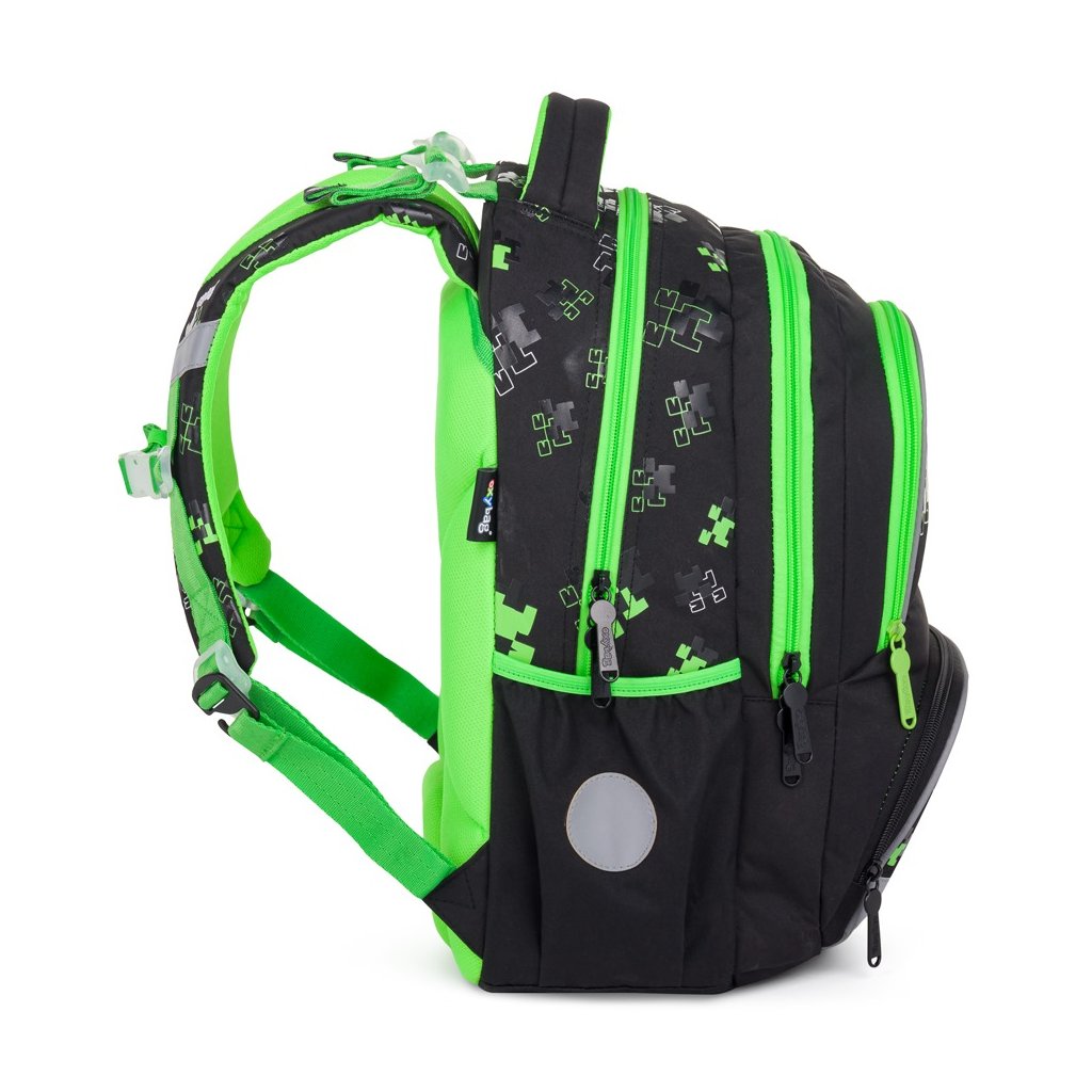 - Velké množství kapes, včetně dvou větších bočních kapes, pro snadnou organizaci všech školních potřeb.
