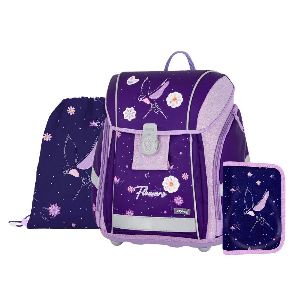 Školní set 3ks PREMIUM LIGHT Flowers Fialový