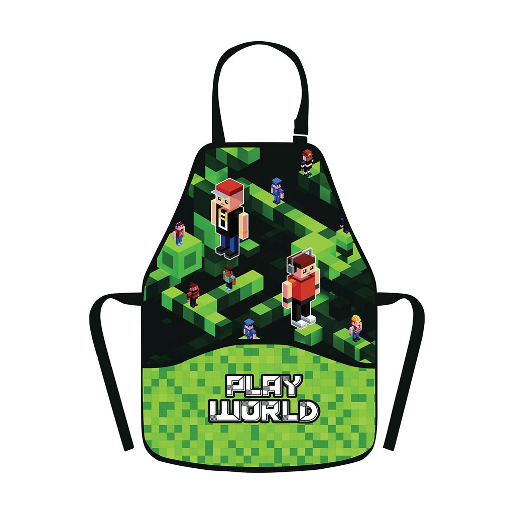 Zástěrka do výtvarné výchovy či na jiné tvořící aktivity. Zapínání na sponku kolem krku (délka max. 50 cm), v pase šňůrky na zavázání (max. 80 cm). Vpředu dvě prostorné kapsy. Materiál 100% polyester.