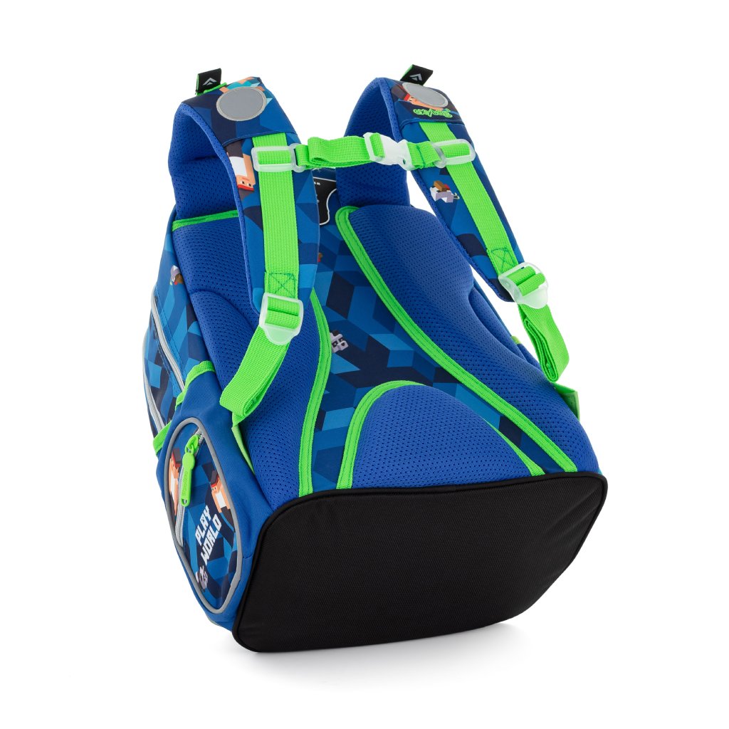 Po stranách najdete dvě větší kapsy. Ať už vaše dítě bude v batohu nosit cokoliv, nic se mu v něm neztratí, batoh totiž nabízí velkorysé množství nejrůznějších kapes, ať už velkých nebo i malých. Hledání klíčů v batohu proto nehrozí. Lehký, přitom dostatečně velký pro všechny věci, které chce mít každý školák po ruce. Mysleli jsme také na bezpečnost vašich dětí, proto batohu nechybějí reflexní prvky. Batoh je ideální na první stupeň 1. - 3. třídu pro děti vysoké od 125 cm. Rozměr: 390 x 280 x 195 cm.