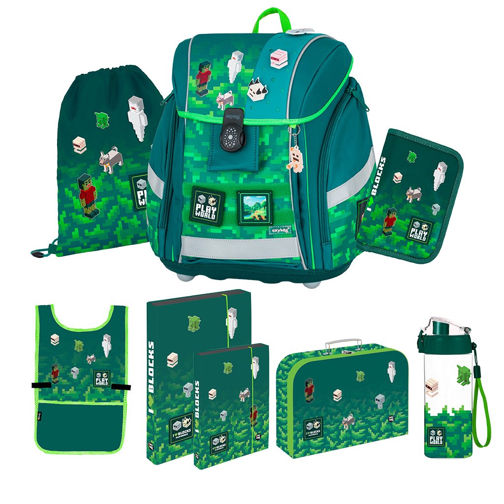 Využijte výhodný nákup v jednom balíčku – školní sety pro prvňáčky jsou ideálním řešením pro každou rodinu. 8dílný set zahrnuje aktovku, penál, boxy na sešity, láhev na pití, sáček na cvičky, kufřík na výtvarné potřeby a zástěrku