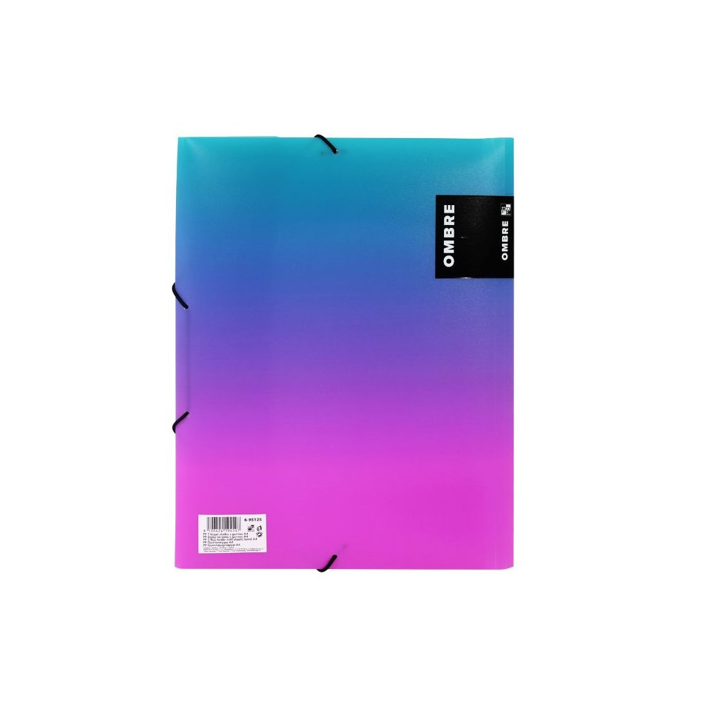 Praktické a stylové desky A4 z kolekce OMBRE se třemi chlopněmi a uzavíráním pomocí gumičky. Vyrobené z odolného polypropylenu.