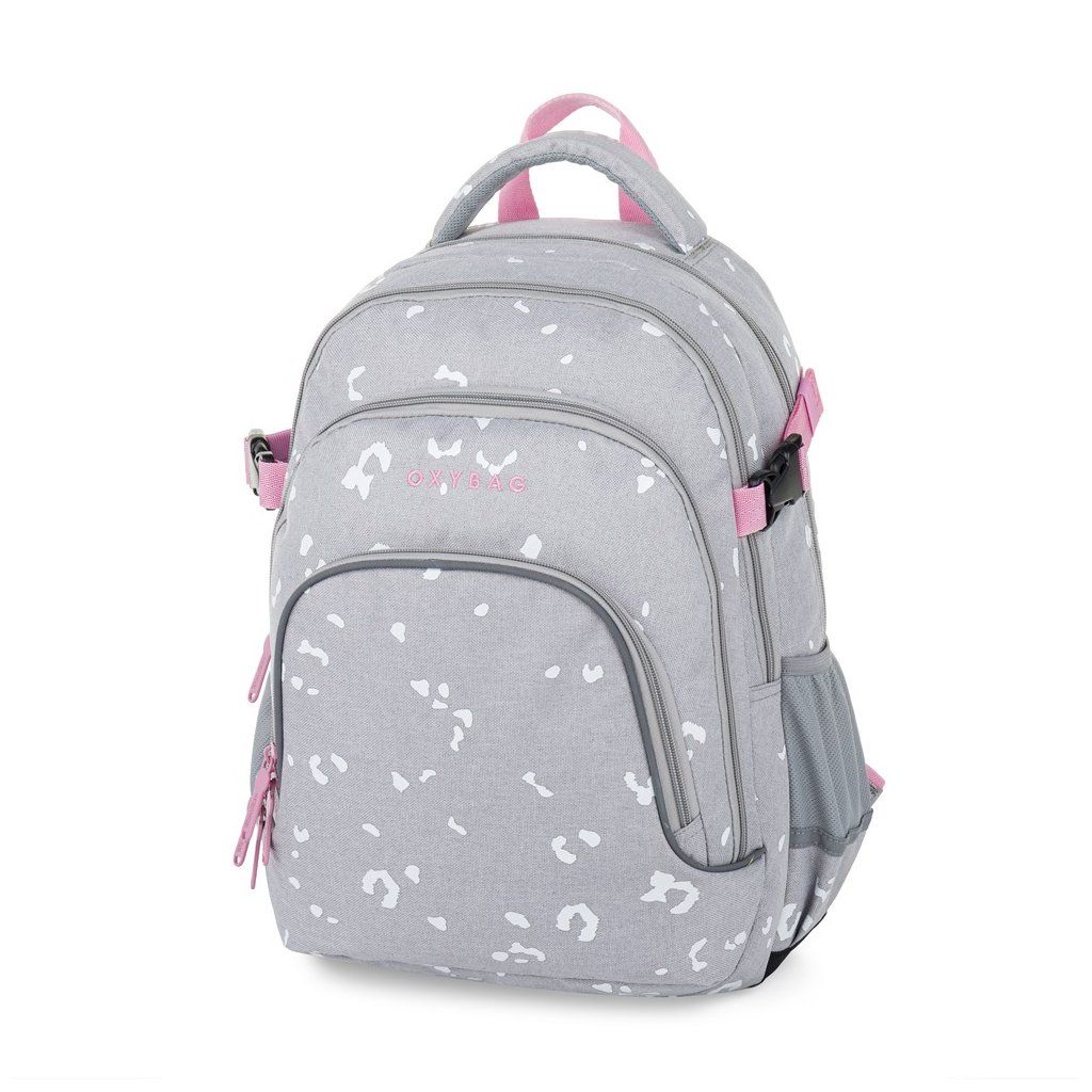 Studentský batoh OXY SCOOLER Grey geometric Pink Style