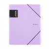 Sloha se třemi chlopněmi pro formát A4 s uzavíráním pomocí gumičky. Materiál: polypropylen, tloušťka 450 mic. Roztažitelný hřbet až 3 cm. Kapacita: 250 listů.