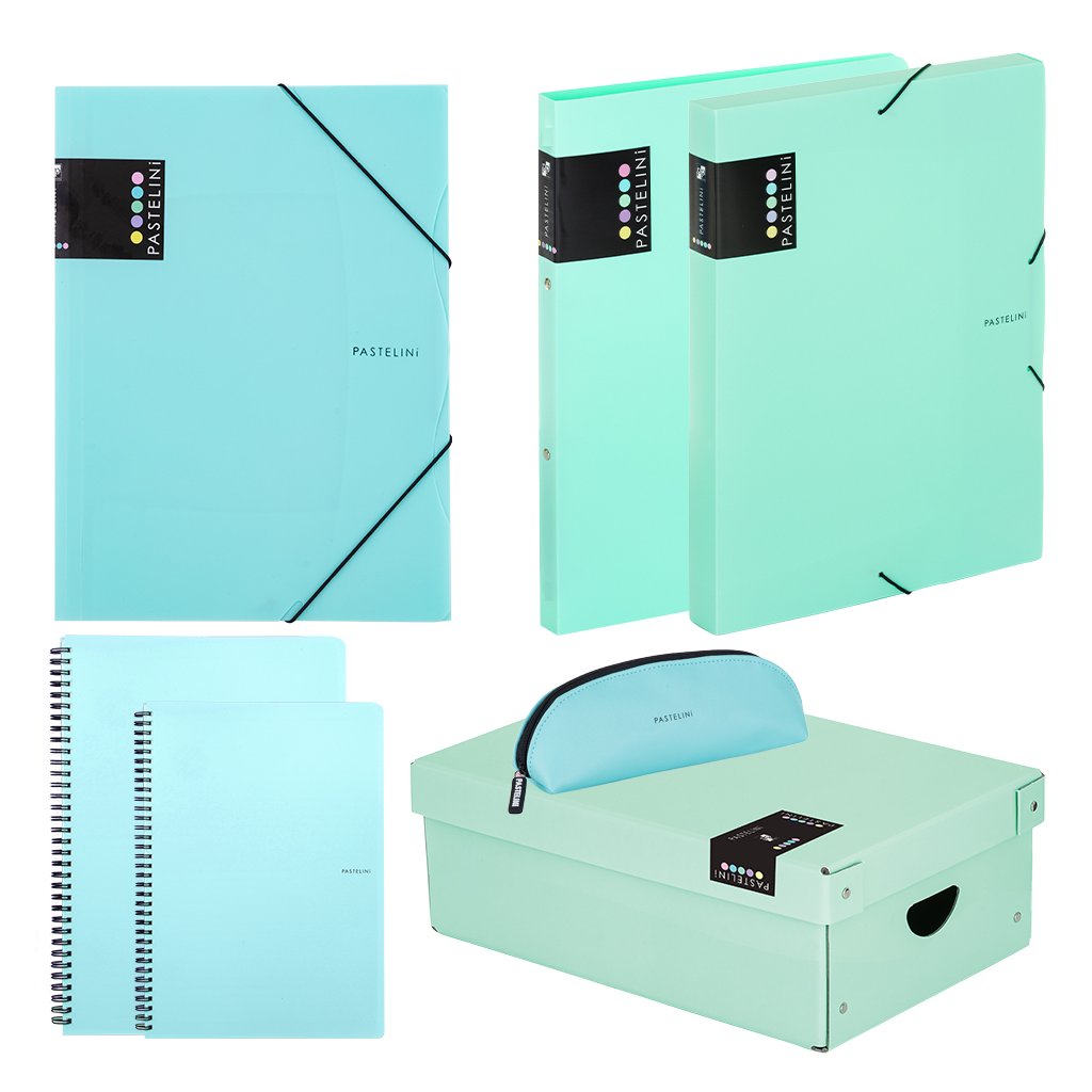 Studentský 7dílný set z kolekce PASTELINi v zelené barvě obsahuje vše, co potřebujete pro efektivní organizaci: kroužkové bloky A4 a A5, kroužkový pořadač, složku s třemi chlopněmi, archivační box a pouzdro na psací potřeby. Ideální pro školní potřeby a každodenní používání.