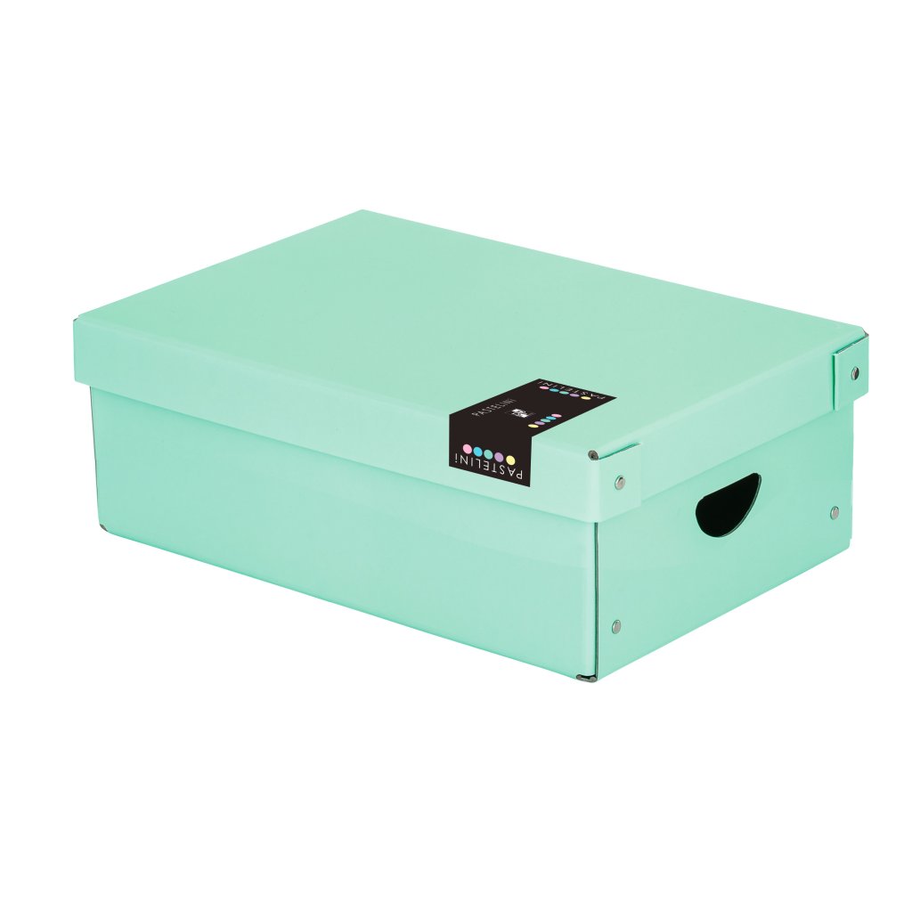 Krabice s víkem a výřezy na úchytky pro snadnější manipulaci. Vhodná k uložení různých předmětů včetně dokumentů. Rozměry: 35,5 x 24 x 9 cm. Materiál: 100% lamino.