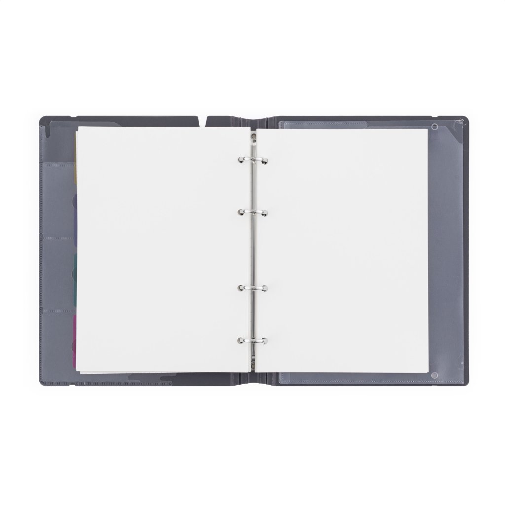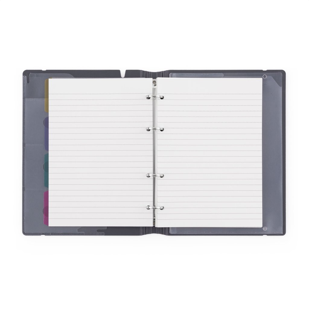 Stylový a odolný čtyřkroužkový blok z kolekce VERDE nabízí 90 stran rozdělených do tří typů: 30 linkovaných, 30 tečkovaných a 30 čistých (bez potisku). Rozřaďovače umožňují snadné členění obsahu, elastická gumička bezpečné uzavření a vnitřní kapsy pojmou vizitky nebo drobnosti. Blok je ideální pro poznámky, studium, práci i kreativní projekty – jeho design spojuje praktičnost a eleganci. Rozměry: 234 x 174 x 25 mm.