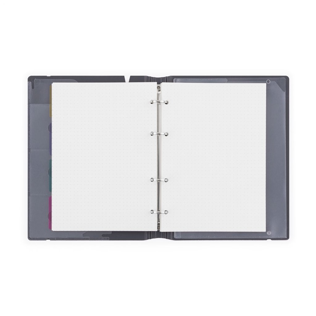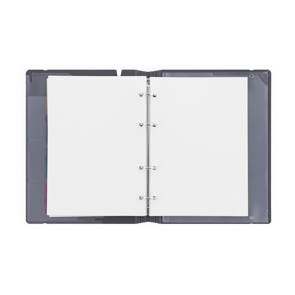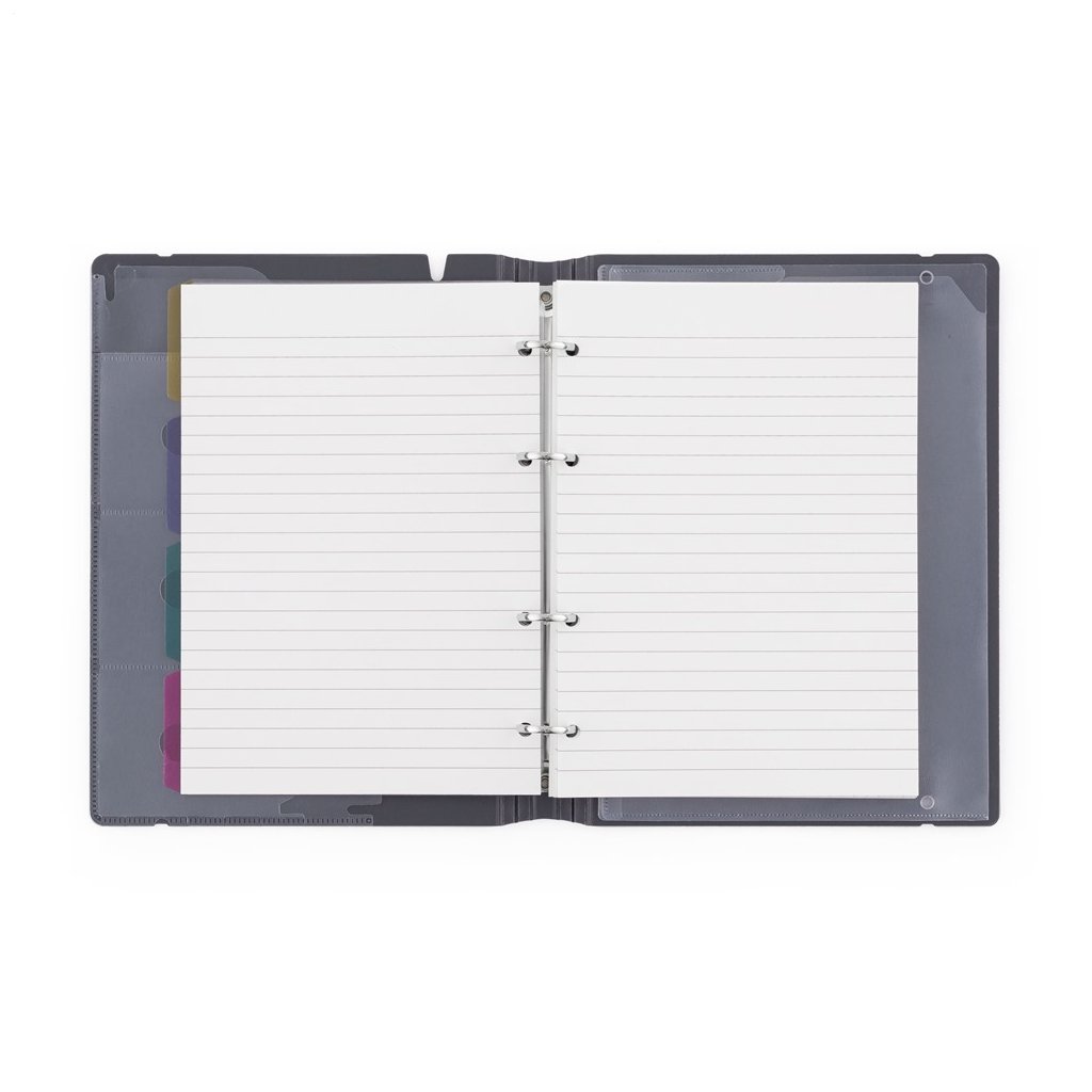 Stylový a odolný čtyřkroužkový blok z kolekce VERDE nabízí 90 stran rozdělených do tří typů: 30 linkovaných, 30 tečkovaných a 30 čistých (bez potisku). Rozřaďovače umožňují snadné členění obsahu, elastická gumička bezpečné uzavření a vnitřní kapsy pojmou vizitky nebo drobnosti. Blok je ideální pro poznámky, studium, práci i kreativní projekty – jeho design spojuje praktičnost a eleganci. Rozměry: 234 x 174 x 25 mm.